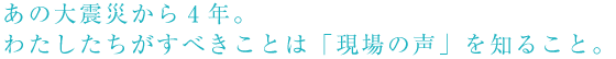毎年3月11日が近づくと、様々なメディアで震災の記録が報じられますが、その期間が過ぎると何もなかったかのような日常が戻ってきます。